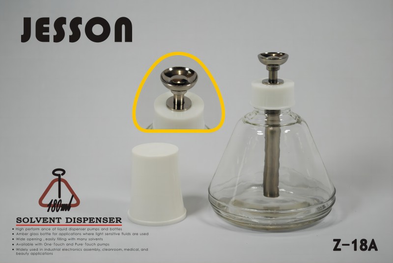 产品描述:玻璃酒精瓶适合流水线生产及修理作业,以减少液体挥发从而节约使用量,特别适合酒精,抹机水等易挥发性液体的储存使用。 特点:高级加厚透明玻璃,可视性强,方便使用,出水口防喷设计,玻璃为防腐蚀物体,可以抗各种敏感液体。 玻璃瓶口直径为2.4CM,吸泵为全金属。 型号分为:Z-18A, Z-18A-ESD